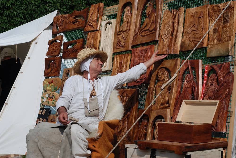 Międzymurze jest przez te kilka dni miejscem, gdzie każde z nas znalazło coś dla siebie. Tu odbywa się jarmark, taki zupełnie niewspółczesny. Tu właśnie spotkaliśmy ludzi, którzy tworzą z pasją, nie wstydzą się przebrać, a nawet więcej – czynią to z dumą. Przeszliśmy między straganami. Spotkaliśmy płatnerza, który szukał następcy. Nie kupiliśmy wyrobów z wikliny, desek do krojenia o przeróżnych kształtach i z drzew różnych wykonanych. Nie kupiliśmy biżuterii ręcznie robionej, czy rzeźbionych na bieżąco obrazów w drewnie. Kusiły nas gry dawne kunsztownie wykonane i zupełnie nam nieznane. Nie kupiliśmy jeszcze wielu rzeczy z duszą i niepowtarzalnych, które cieszyły nasze oczy i kusiły.