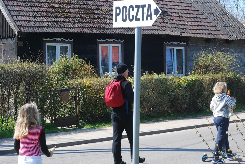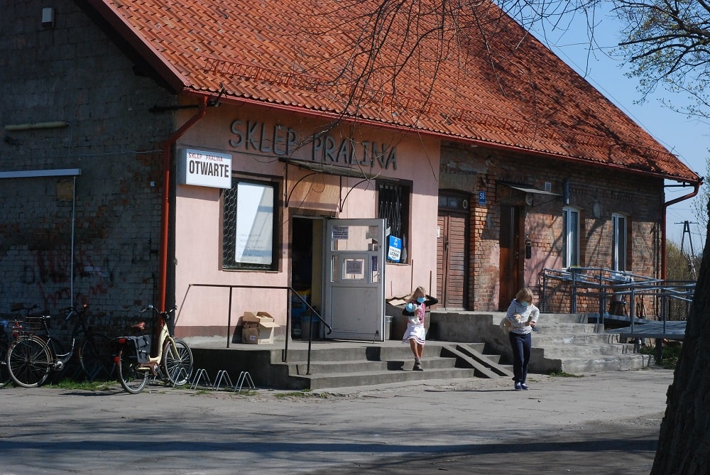 W Drewnicy jest poczta i zaskakująco dużo sklepów, samych spożywczych naliczyliśmy cztery. Jest też szkoła i te domy, wcale nie podcieniowe, jednak drewniane i jak malowane, nie nudne jednokolorowe.