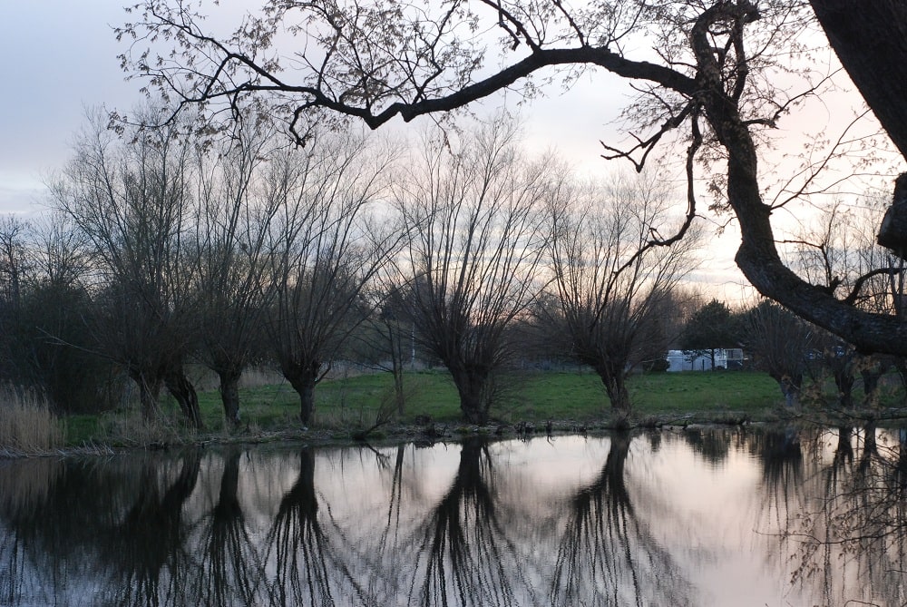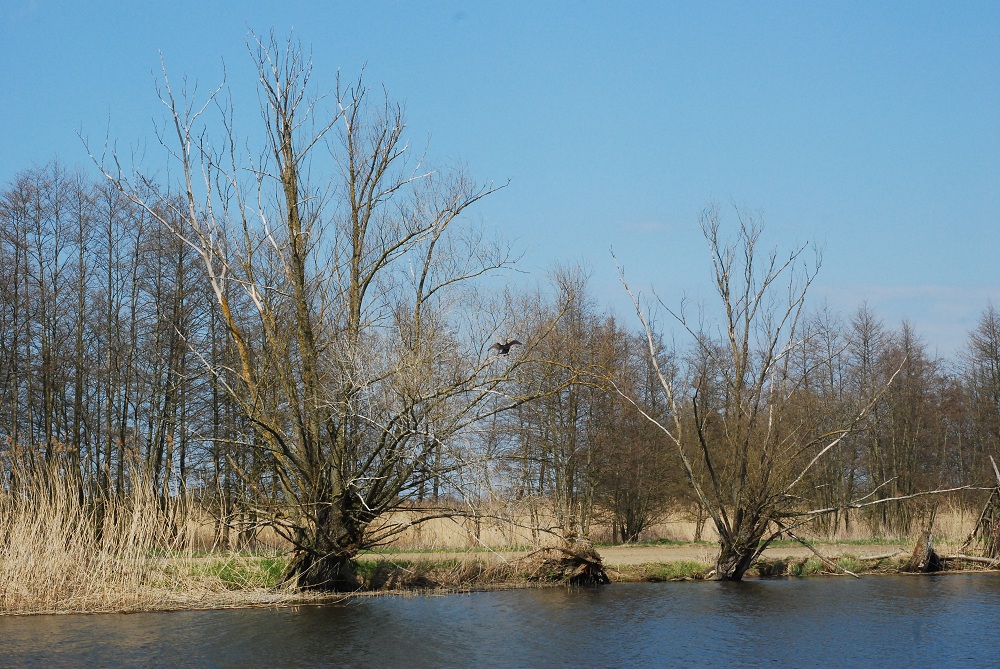 Szliśmy dalej po tym wypaczonym wąskim torze, patrząc na lewo i prawo. Dużo podmokłości, jakaś kępka trawy, żółte kwiatki, wierzby charakterystyczne dla regionu. Wierzby nie są tu bez przyczyny, nasadzane na krańcach pola działają jak naturalne pompy, które potrafią odparować nawet do 50 l wody na dobę. Ponadto wierzby dobrze znoszą ogławianie (nie zachwalam tej praktyki), czyli regularne przycinanie, podczas którego usuwa się wszystkie gałęzie z wierzchołka drzewa. Gałęzie, które dawniej miały wiele zastosowań.