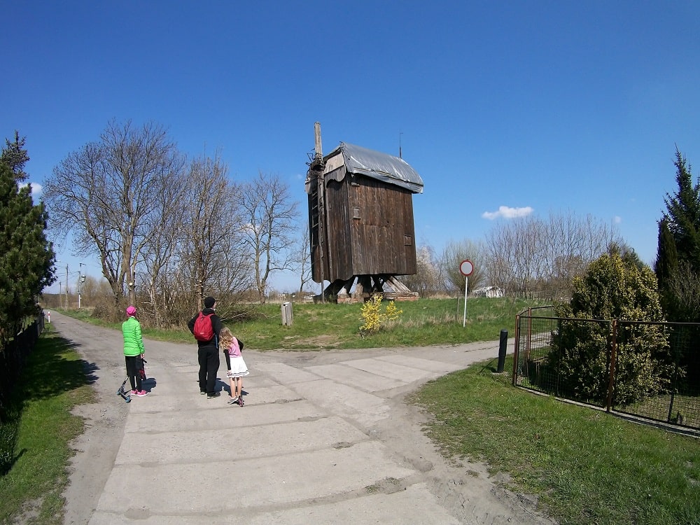W słoneczny dzień kusi ta miejscowość soją aurą i wiatrakiem. Mimo chłodu dzień był słoneczny. Po kolejnym lodzie foch odszedł w zapomnienie. Do wiatraka szło się prosto, główną drogą od mostu, potem pomiędzy zabudowaniami z drewna, kwiatami zdobnymi, później w prawo – szutrową drogą przez chwilę. Sam cel jest ukryty za drzewami, które znacznie przerasta. Zobaczyłem wiatrak kozłowy, czy jak kto woli koźlak. Stał dostojnie na jednej nodze, koźle, tak osadzony, aby cały budynek wraz ze skrzydłami można było obracać do wiatru. Chciałoby się zobaczyć tych ludzi przyprószonych mąką, bo staliśmy naprzeciw wiatraka przemiałowego, zapartych o specjalny dyszel umieszczony po przeciwnej śmigłom stronie, wciskających stopy w trawiaste podłoże, żeby odwrócić tę potężną budowlę. Dach wiatraka, dzisiaj okryty plandeką, przypomina kształtem odwróconą łódź, jakby przybysze zza morza zarzucili dalszą podróży i osiedli, by ujarzmiać ten zalany ląd. Kiedyś ten wiatrak nie był samotny, kraina ta wiatrakami stała, rzec by można. Większość jako pompy służyła, do odwadniania i nawadniania małych polderów, dzisiaj zastąpiły je nowoczesne urządzenia. Wiatrak w Drewnicy mielił mąkę od 1718 roku. Dzisiaj już nie mieli, chociaż kamienie młyńskie wciąż są na trzeciej kondygnacji, koła, wały i przekładnie drewniane – to skrzydła, lub raczej to, co po nich zostało – nie wprawią ich w ruch. Widzieliśmy te deski szare, śmigi połamane, widzieliśmy przemijający czas, postaliśmy chwilę w milczeniu, w żalu, że coś się kończy, a potem znów nastały śmiechy, kłótnie, przekomarzanie. Czas na piknik!