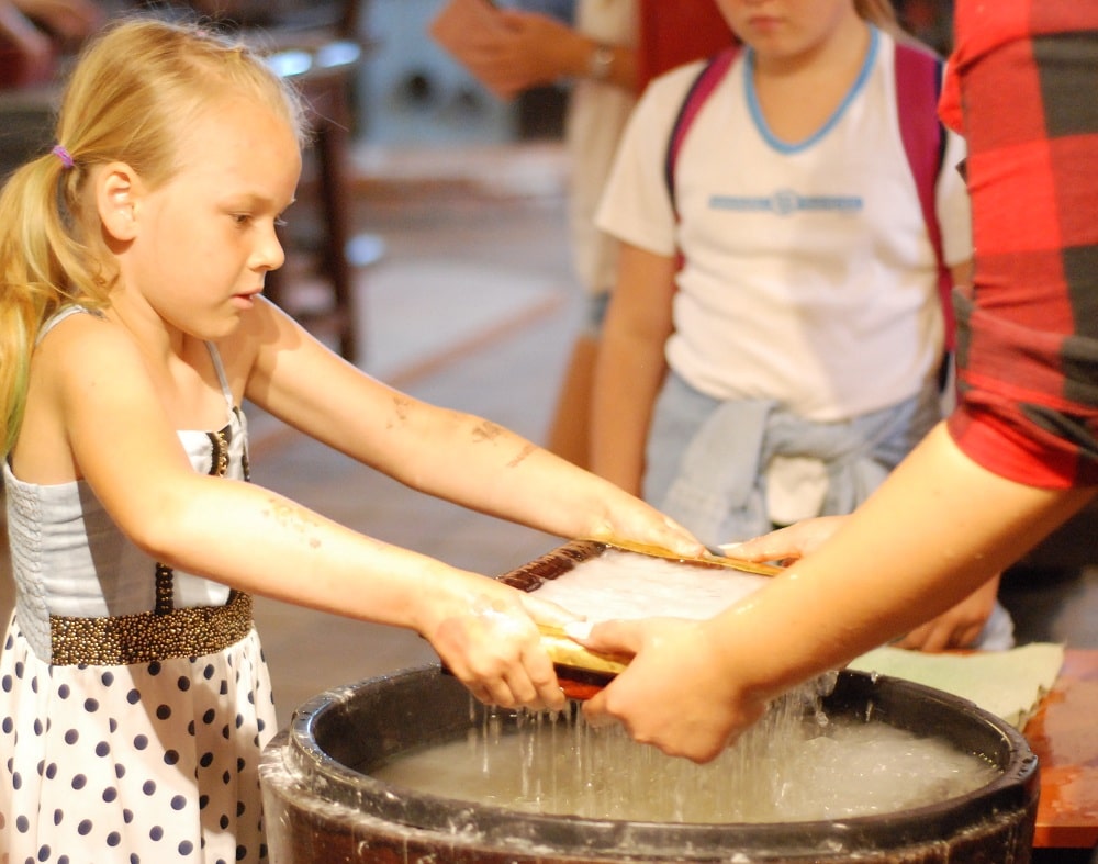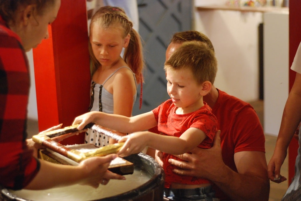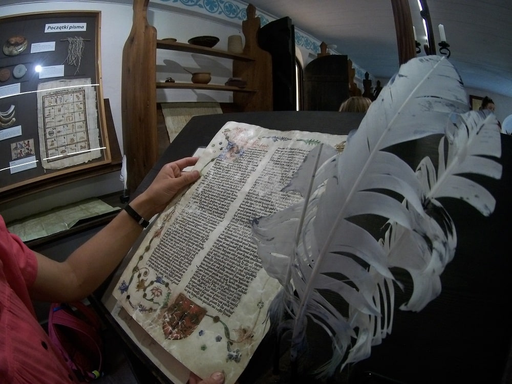 Tu ożywają dawne prasy drukarskie, specjalnymi sitami czerpie się papier, a pióra gęsie maczane w kałamarzach przenoszą myśl na papier. Dzieje się tu dużo więcej. Wiedza i pasja załogi obiektu przyczyniła się do ocalenie już nie jednego starego dokumentu. My podczas naszego niespełna dwugodzinnego pobytu w tym miejscu dowiedzieliśmy się jak powstaje papier czerpany.
