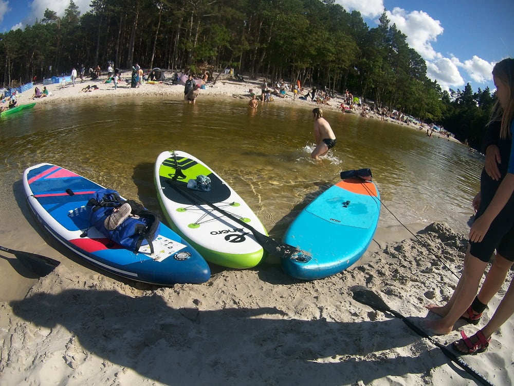 Pierwsze 400 m rzeki jest proste i płytkie, wyraźnie widać tu ingerencję człowieka. W słoneczne wakacyjne dni dziesiątki kajaków zaczynają tu swój spływ. Były takie kolorowe, przezroczyste, by widzieć, co pod nimi, a pośród nich my na swoich supach (o których kiedyś napiszę wam więcej).