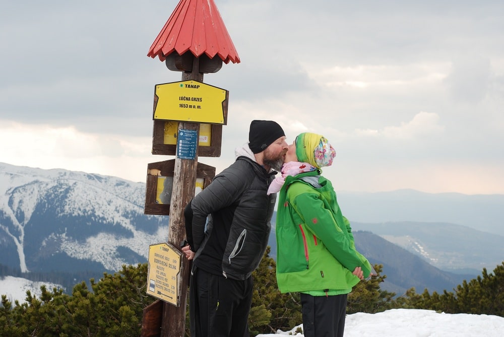 Wyżej było więcej zimy. Początkowo szliśmy trawersem, później zakosami wśród świerczyny i rumowisk kwarcytycznych, aż dotarliśmy na grzbiet graniczny w rejonie Czuby (1515 m n.p.m.). Zapadaliśmy się w śniegu i uwierzcie mi, że to było fajne. Zanim zaatakowaliśmy szczyt, zboczyliśmy na skałki po prawej stronie, gdzie osłonięci przed wiatrem, ogrzewani słońcem leniuchowaliśmy, co popularnie określane jest mianem piknikowania. Ludzie mijali nas sporadycznie, często zziajani, z ciężkimi plecakami, mieli już za sobą godziny dokonań.