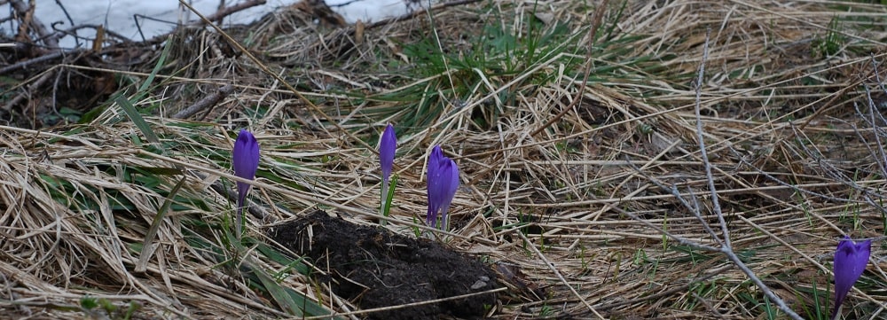 – Zobaczcie, tu też są krokusy! Prawdziwe, wolne krokusy, te nawet możemy powąchać.