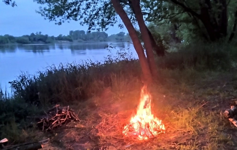 Ogień, powrót do przeszłości. Rzadko bywamy tak blisko pierwotnego ognia, wolnego ognia. Oczywiście jest go pełno w naszym życiu, w piecach, kuchenkach. Czasami zapalimy świeczkę, by przywołać magię wszechświata. A jednak śmiem twierdzić, że wolnego ognia coraz mniej. Na Wiśle dołączył do nas, nie baliśmy się go, a on nas w zamian żywił, ogrzewał, opowiadał opowieści, rozjaśniał noc. Nie wszystko rozumieliśmy, nasze języki już się rozeszły. Zaprawieni alkoholem, niczym szamani łapaliśmy łączność z duszami dobrymi i złymi, używki łamią granicę między światami. Wypływały dusze z żalami wykrzyczanymi światu i te były dobre. Były też takie, które ten żal zamykały i wpychały w ciała uczestników wyprawy, a wtedy człowiek staje się mroczny, posępny, wkurwiony.